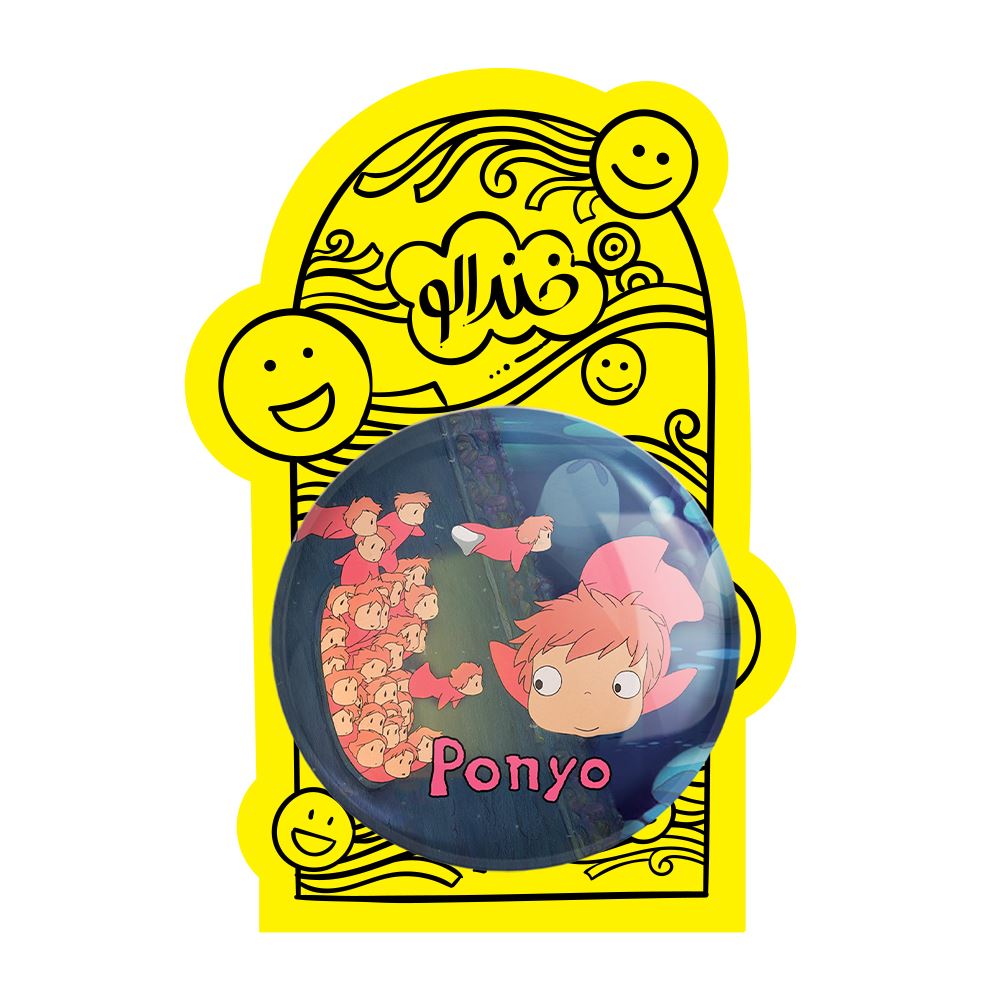 پیکسل بزرگ انیمه پونیو Ponyo خندالو با روکش سلفون حرارتی مات مخملی ضدخش و قطعه پشتی فلزی تولید می شود. قطعات پشت پیکسل های خندالو با سوزن یک تکه ثابت و بدون لغزش و جا به جایی، ایستایی بسیار خوبی دارند که این مهم در تولید پیکسل های 58 میلیمتری نیز رعایت شده است.