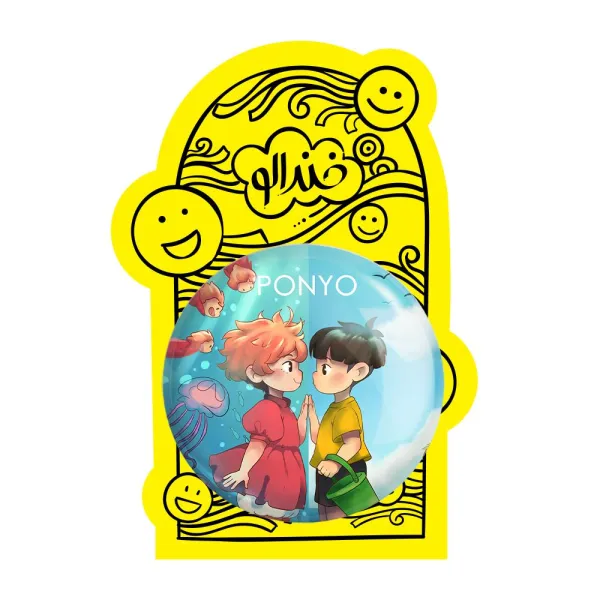 پیکسل بزرگ انیمه پونیو Ponyo خندالو با روکش سلفون حرارتی مات مخملی ضدخش و قطعه پشتی فلزی تولید می شود. قطعات پشت پیکسل های خندالو با سوزن یک تکه ثابت و بدون لغزش و جا به جایی، ایستایی بسیار خوبی دارند که این مهم در تولید پیکسل های 58 میلیمتری نیز رعایت شده است.