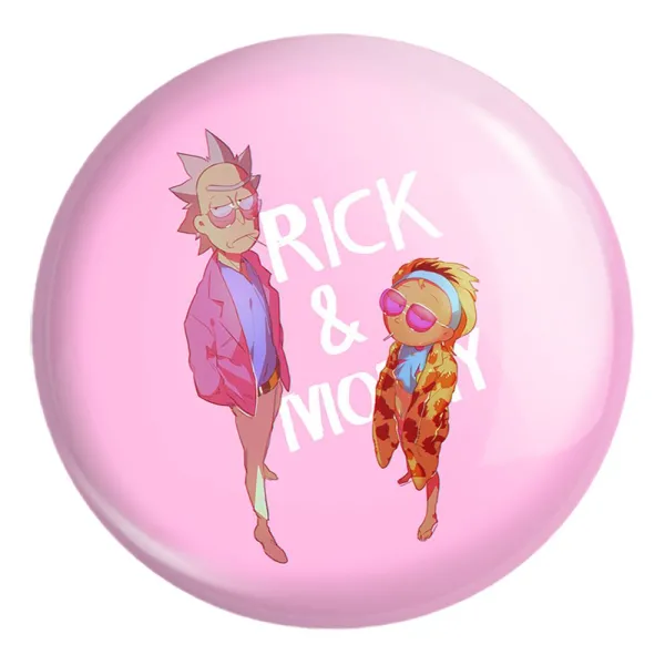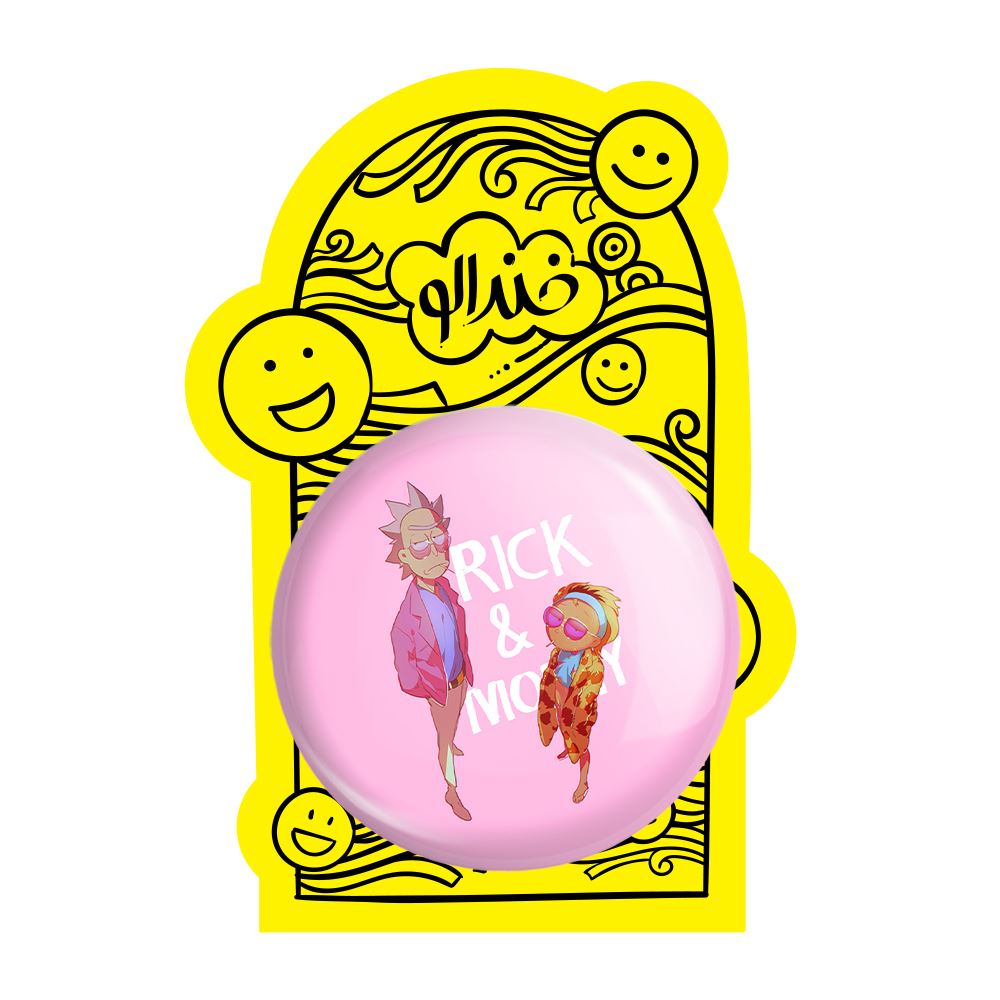 پیکسل بزرگ انیمیشن ریک و مورتی Rick and Mort خندالو با روکش سلفون حرارتی مات مخملی ضدخش و قطعه پشتی فلزی تولید می شود. قطعات پشت پیکسل های خندالو با سوزن یک تکه ثابت و بدون لغزش و جا به جایی، ایستایی بسیار خوبی دارند که این مهم در تولید پیکسل های 58 میلیمتری نیز رعایت شده است.