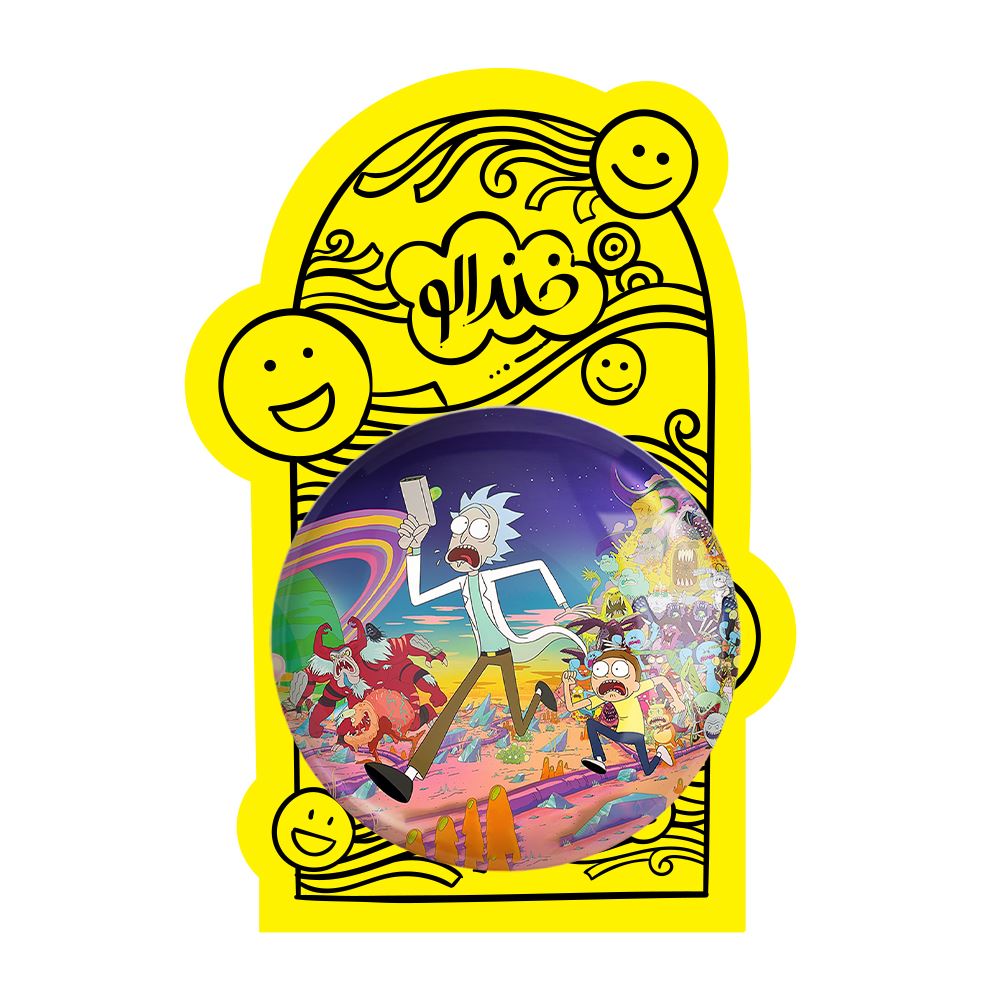 پیکسل بزرگ انیمیشن ریک و مورتی Rick and Mort خندالو با روکش سلفون حرارتی مات مخملی ضدخش و قطعه پشتی فلزی تولید می شود. قطعات پشت پیکسل های خندالو با سوزن یک تکه ثابت و بدون لغزش و جا به جایی، ایستایی بسیار خوبی دارند که این مهم در تولید پیکسل های 58 میلیمتری نیز رعایت شده است.