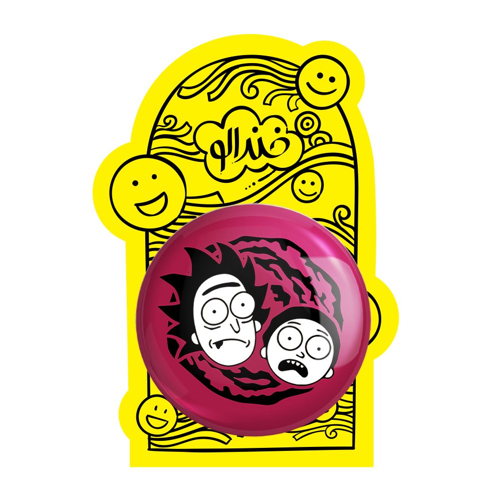 پیکسل بزرگ انیمیشن ریک و مورتی Rick and Mort خندالو با روکش سلفون حرارتی مات مخملی ضدخش و قطعه پشتی فلزی تولید می شود. قطعات پشت پیکسل های خندالو با سوزن یک تکه ثابت و بدون لغزش و جا به جایی، ایستایی بسیار خوبی دارند که این مهم در تولید پیکسل های 58 میلیمتری نیز رعایت شده است.
