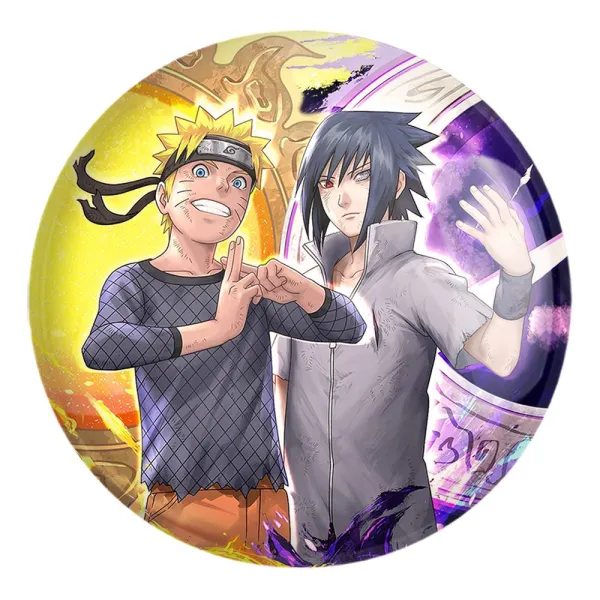 پیکسل بزرگ اوزوماکی و ساسکه انیمه ناروتو Naruto خندالو با روکش سلفون حرارتی مات مخملی ضدخش و قطعه پشتی فلزی تولید می شود. قطعات پشت پیکسل های خندالو با سوزن یک تکه ثابت و بدون لغزش و جا به جایی، ایستایی بسیار خوبی دارند که این مهم در تولید پیکسل های 58 میلیمتری نیز رعایت شده است.