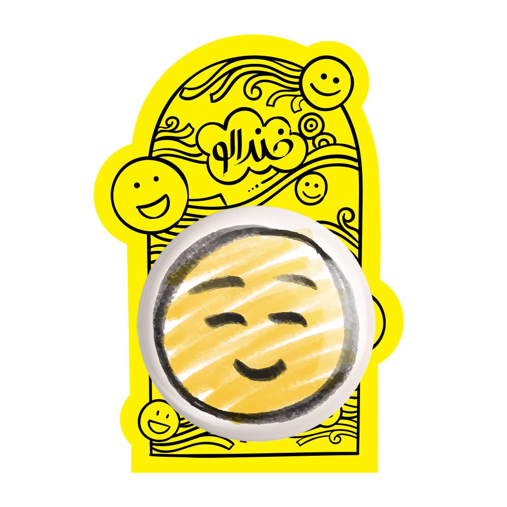 پیکسل بزرگ ایموجی Emoji خندالو با روکش سلفون حرارتی مات مخملی ضدخش و قطعه پشتی فلزی تولید می شود. قطعات پشت پیکسل های خندالو با سوزن یک تکه ثابت و بدون لغزش و جا به جایی، ایستایی بسیار خوبی دارند که این مهم در تولید پیکسل های 58 میلیمتری نیز رعایت شده است.