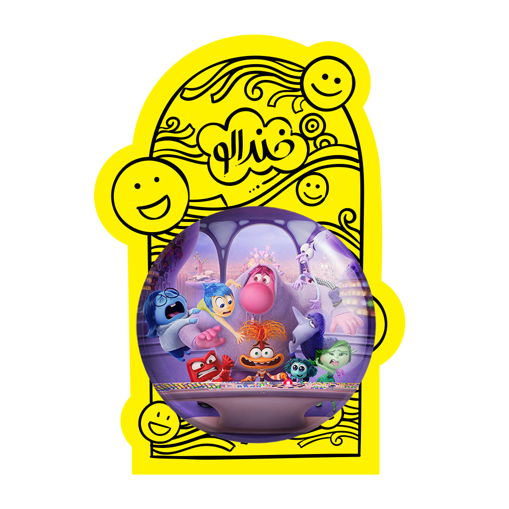 پیکسل بزرگ اینساید اوت (Inside Out) خندالو با روکش سلفون حرارتی مات مخملی ضدخش و قطعه پشتی فلزی تولید می شود. قطعات پشت پیکسل های خندالو با سوزن یک تکه ثابت و بدون لغزش و جا به جایی، ایستایی بسیار خوبی دارند که این مهم در تولید پیکسل های 58 میلیمتری نیز رعایت شده است.