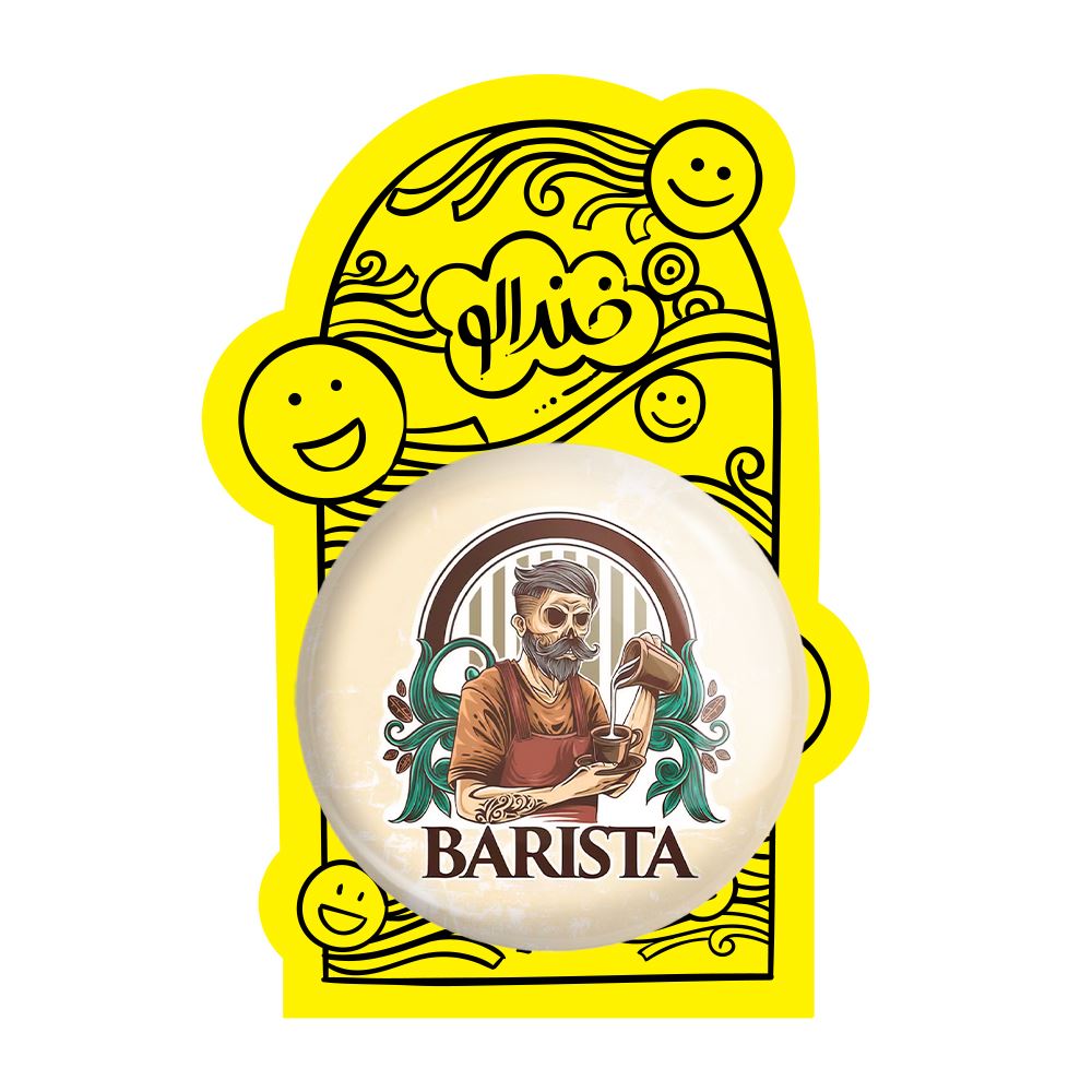 پیکسل بزرگ باریستا کافه چی خندالو با روکش سلفون حرارتی مات مخملی ضدخش و قطعه پشتی فلزی تولید می شود. قطعات پشت پیکسل های خندالو با سوزن یک تکه ثابت و بدون لغزش و جا به جایی، ایستایی بسیار خوبی دارند که این مهم در تولید پیکسل های 58 میلیمتری نیز رعایت شده است.