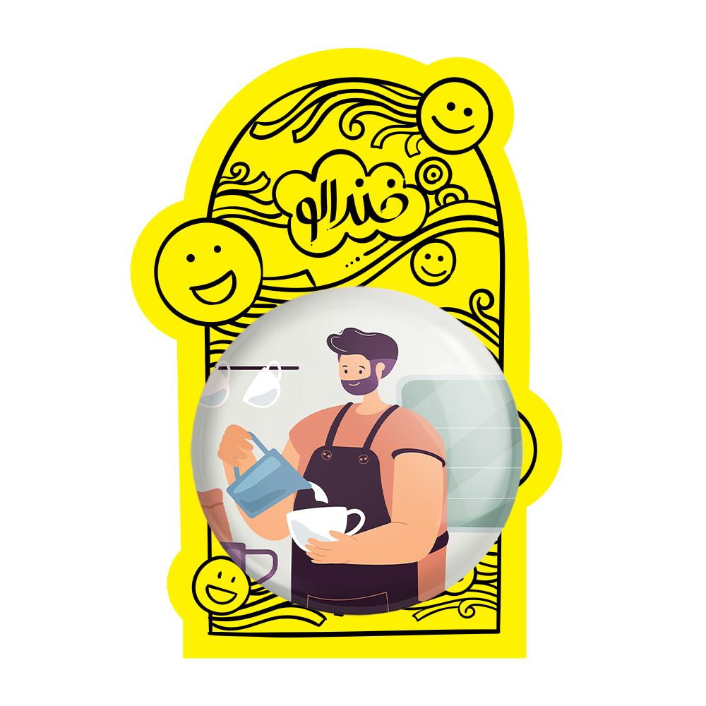 پیکسل بزرگ باریستا کافه چی خندالو با روکش سلفون حرارتی مات مخملی ضدخش و قطعه پشتی فلزی تولید می شود. قطعات پشت پیکسل های خندالو با سوزن یک تکه ثابت و بدون لغزش و جا به جایی، ایستایی بسیار خوبی دارند که این مهم در تولید پیکسل های 58 میلیمتری نیز رعایت شده است.