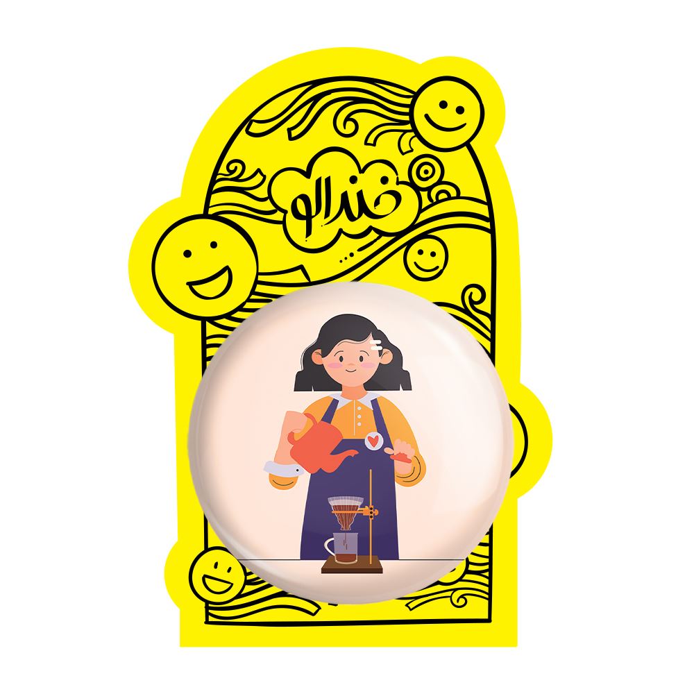 پیکسل بزرگ باریستا کافه چی خندالو با روکش سلفون حرارتی مات مخملی ضدخش و قطعه پشتی فلزی تولید می شود. قطعات پشت پیکسل های خندالو با سوزن یک تکه ثابت و بدون لغزش و جا به جایی، ایستایی بسیار خوبی دارند که این مهم در تولید پیکسل های 58 میلیمتری نیز رعایت شده است.