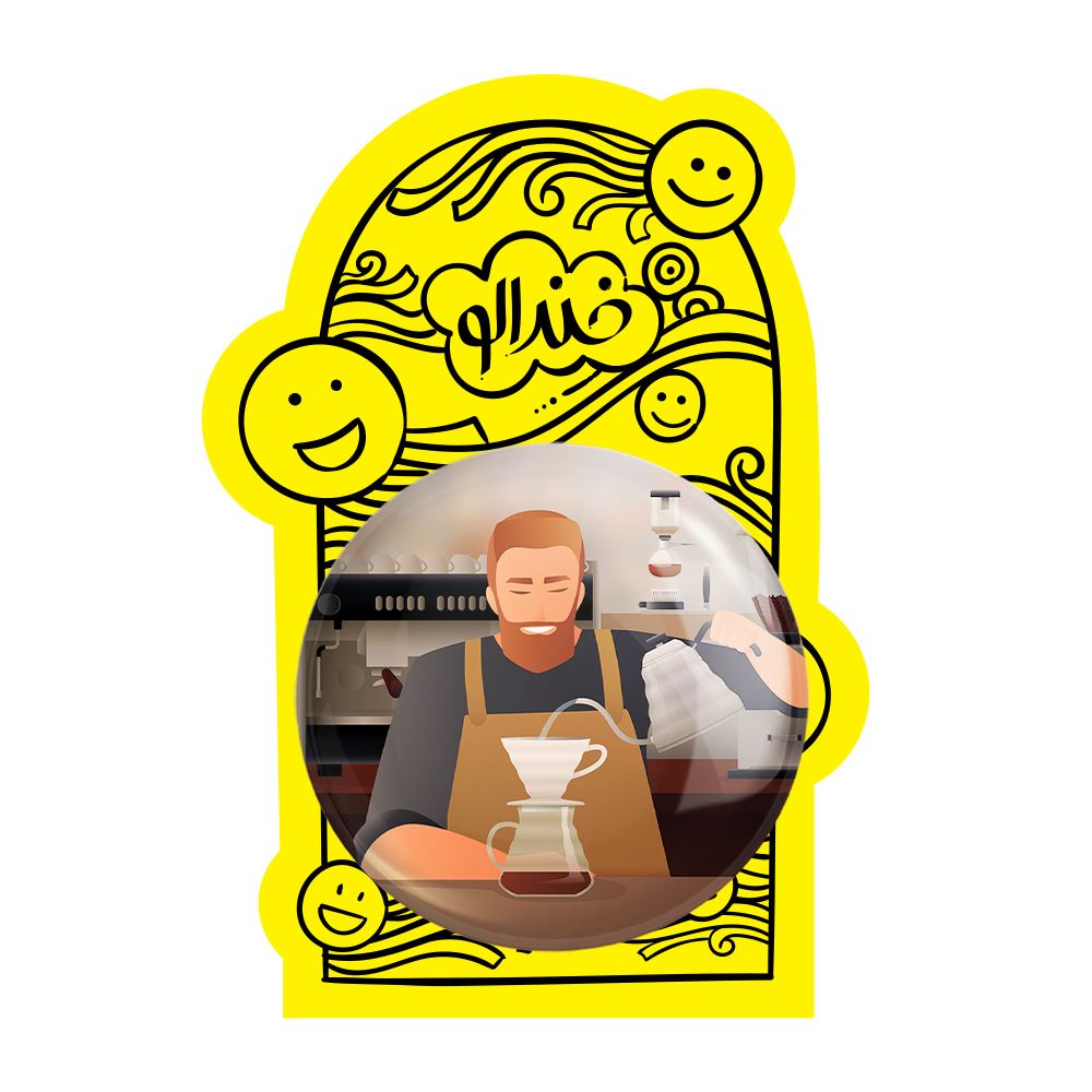 پیکسل بزرگ باریستا کافه چی خندالو با روکش سلفون حرارتی مات مخملی ضدخش و قطعه پشتی فلزی تولید می شود. قطعات پشت پیکسل های خندالو با سوزن یک تکه ثابت و بدون لغزش و جا به جایی، ایستایی بسیار خوبی دارند که این مهم در تولید پیکسل های 58 میلیمتری نیز رعایت شده است.