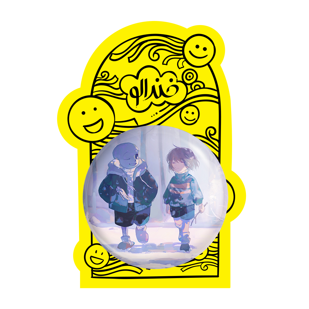 پیکسل بزرگ بازی آندرتیل (Undertale) خندالو با روکش سلفون حرارتی مات مخملی ضدخش و قطعه پشتی فلزی تولید می شود. قطعات پشت پیکسل های خندالو با سوزن یک تکه ثابت و بدون لغزش و جا به جایی، ایستایی بسیار خوبی دارند که این مهم در تولید پیکسل های 58 میلیمتری نیز رعایت شده است.