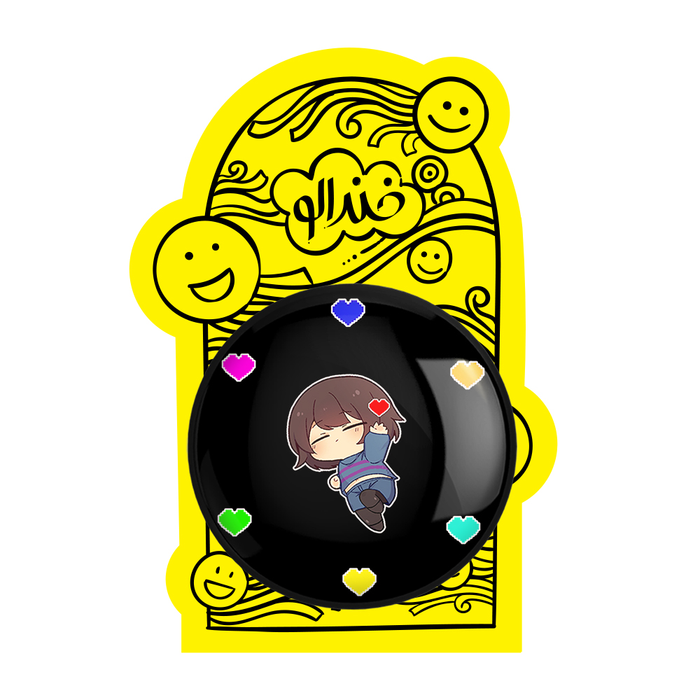 پیکسل بزرگ بازی آندرتیل (Undertale) خندالو با روکش سلفون حرارتی مات مخملی ضدخش و قطعه پشتی فلزی تولید می شود. قطعات پشت پیکسل های خندالو با سوزن یک تکه ثابت و بدون لغزش و جا به جایی، ایستایی بسیار خوبی دارند که این مهم در تولید پیکسل های 58 میلیمتری نیز رعایت شده است.