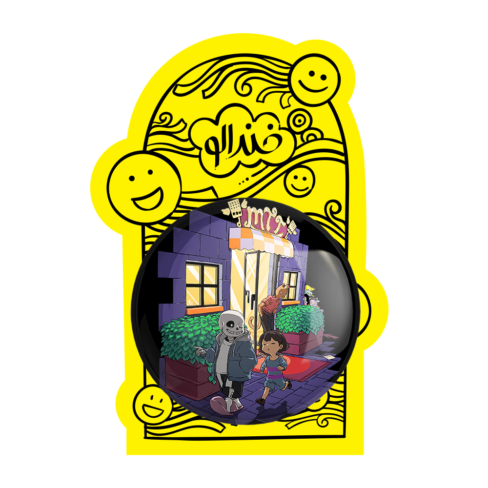 پیکسل بزرگ بازی آندرتیل (Undertale) خندالو با روکش سلفون حرارتی مات مخملی ضدخش و قطعه پشتی فلزی تولید می شود. قطعات پشت پیکسل های خندالو با سوزن یک تکه ثابت و بدون لغزش و جا به جایی، ایستایی بسیار خوبی دارند که این مهم در تولید پیکسل های 58 میلیمتری نیز رعایت شده است.