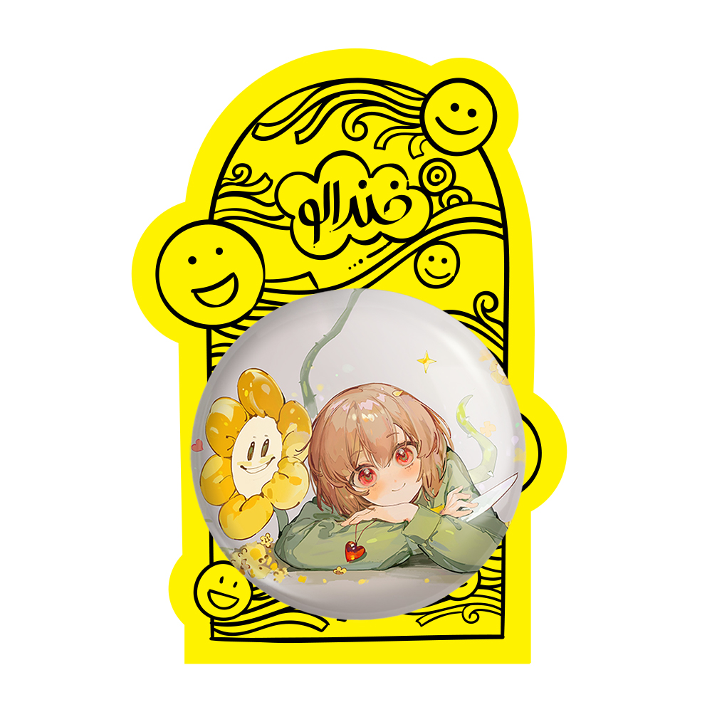 پیکسل بزرگ بازی آندرتیل (Undertale) خندالو با روکش سلفون حرارتی مات مخملی ضدخش و قطعه پشتی فلزی تولید می شود. قطعات پشت پیکسل های خندالو با سوزن یک تکه ثابت و بدون لغزش و جا به جایی، ایستایی بسیار خوبی دارند که این مهم در تولید پیکسل های 58 میلیمتری نیز رعایت شده است.