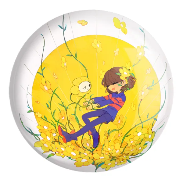 پیکسل بزرگ بازی آندرتیل (Undertale) خندالو با روکش سلفون حرارتی مات مخملی ضدخش و قطعه پشتی فلزی تولید می شود. قطعات پشت پیکسل های خندالو با سوزن یک تکه ثابت و بدون لغزش و جا به جایی، ایستایی بسیار خوبی دارند که این مهم در تولید پیکسل های 58 میلیمتری نیز رعایت شده است.