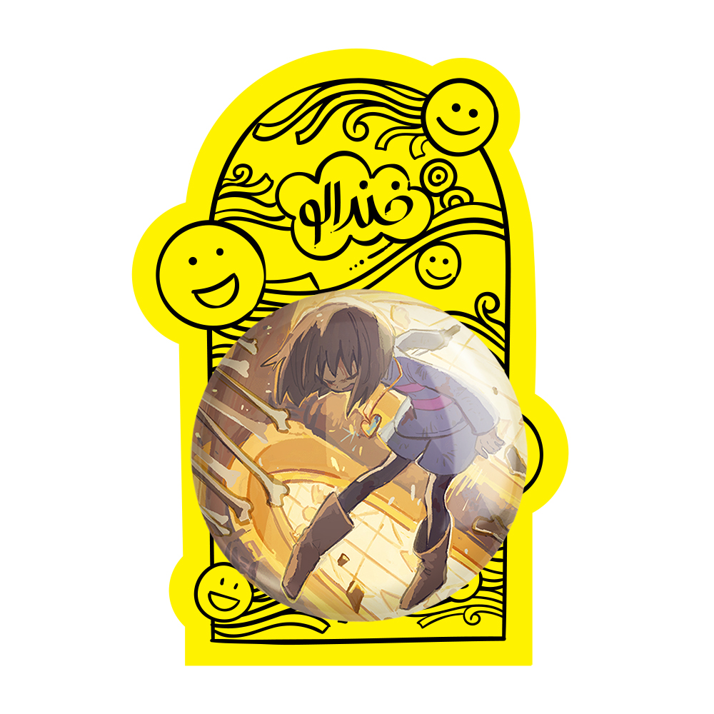 پیکسل بزرگ بازی آندرتیل (Undertale) خندالو با روکش سلفون حرارتی مات مخملی ضدخش و قطعه پشتی فلزی تولید می شود. قطعات پشت پیکسل های خندالو با سوزن یک تکه ثابت و بدون لغزش و جا به جایی، ایستایی بسیار خوبی دارند که این مهم در تولید پیکسل های 58 میلیمتری نیز رعایت شده است.