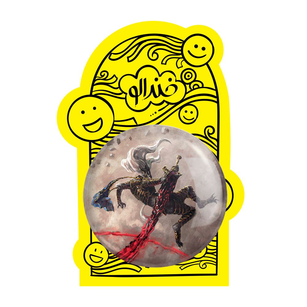 پیکسل بزرگ بازی الدن رینگ Elden Ring خندالو با روکش سلفون حرارتی مات مخملی ضدخش و قطعه پشتی فلزی تولید می شود. قطعات پشت پیکسل های خندالو با سوزن یک تکه ثابت و بدون لغزش و جا به جایی، ایستایی بسیار خوبی دارند که این مهم در تولید پیکسل های 58 میلیمتری نیز رعایت شده است.