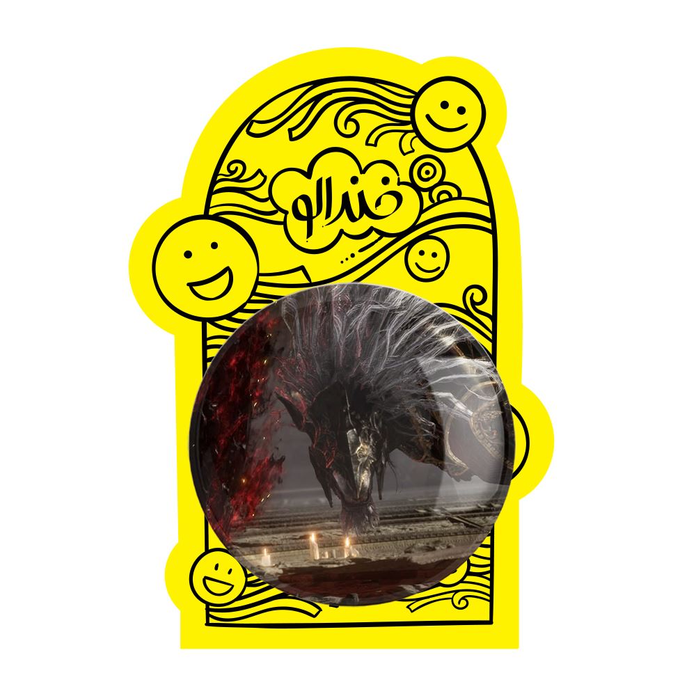 پیکسل بزرگ بازی الدن رینگ Elden Ring خندالو با روکش سلفون حرارتی مات مخملی ضدخش و قطعه پشتی فلزی تولید می شود. قطعات پشت پیکسل های خندالو با سوزن یک تکه ثابت و بدون لغزش و جا به جایی، ایستایی بسیار خوبی دارند که این مهم در تولید پیکسل های 58 میلیمتری نیز رعایت شده است.