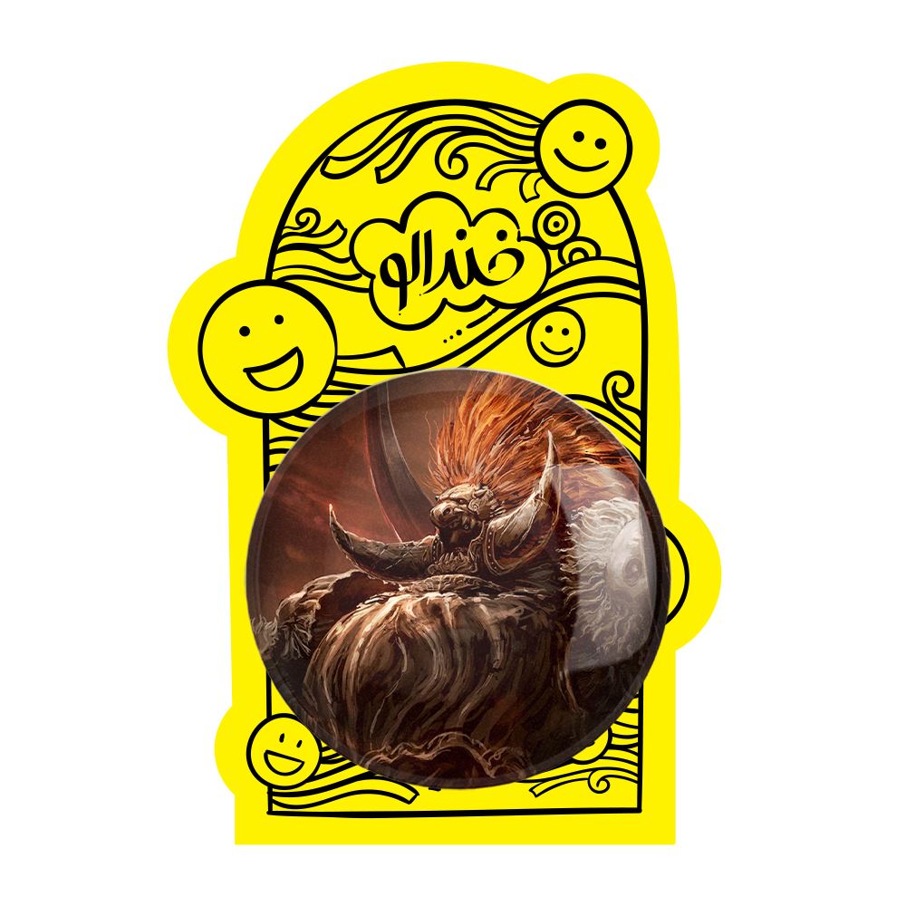 پیکسل بزرگ بازی الدن رینگ Elden Ring خندالو با روکش سلفون حرارتی مات مخملی ضدخش و قطعه پشتی فلزی تولید می شود. قطعات پشت پیکسل های خندالو با سوزن یک تکه ثابت و بدون لغزش و جا به جایی، ایستایی بسیار خوبی دارند که این مهم در تولید پیکسل های 58 میلیمتری نیز رعایت شده است.