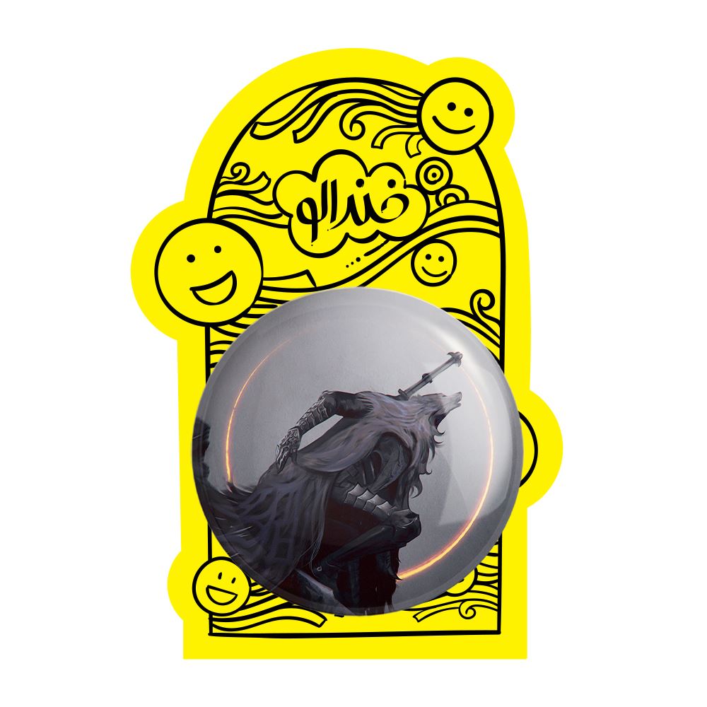 پیکسل بزرگ بازی الدن رینگ Elden Ring خندالو با روکش سلفون حرارتی مات مخملی ضدخش و قطعه پشتی فلزی تولید می شود. قطعات پشت پیکسل های خندالو با سوزن یک تکه ثابت و بدون لغزش و جا به جایی، ایستایی بسیار خوبی دارند که این مهم در تولید پیکسل های 58 میلیمتری نیز رعایت شده است.