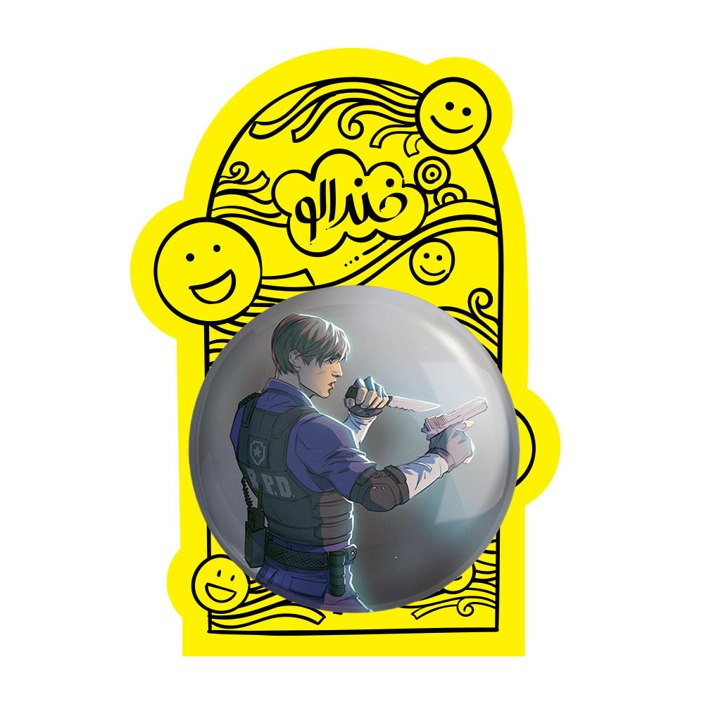 پیکسل بزرگ بازی رزیدنت اویل (Resident Evil) خندالو با روکش سلفون حرارتی مات مخملی ضدخش و قطعه پشتی فلزی تولید می شود. قطعات پشت پیکسل های خندالو با سوزن یک تکه ثابت و بدون لغزش و جا به جایی، ایستایی بسیار خوبی دارند که این مهم در تولید پیکسل های 58 میلیمتری نیز رعایت شده است.