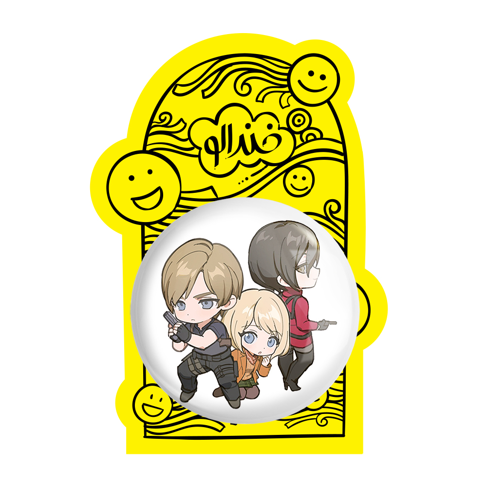 پیکسل بزرگ بازی رزیدنت اویل (Resident Evil) خندالو با روکش سلفون حرارتی مات مخملی ضدخش و قطعه پشتی فلزی تولید می شود. قطعات پشت پیکسل های خندالو با سوزن یک تکه ثابت و بدون لغزش و جا به جایی، ایستایی بسیار خوبی دارند که این مهم در تولید پیکسل های 58 میلیمتری نیز رعایت شده است.