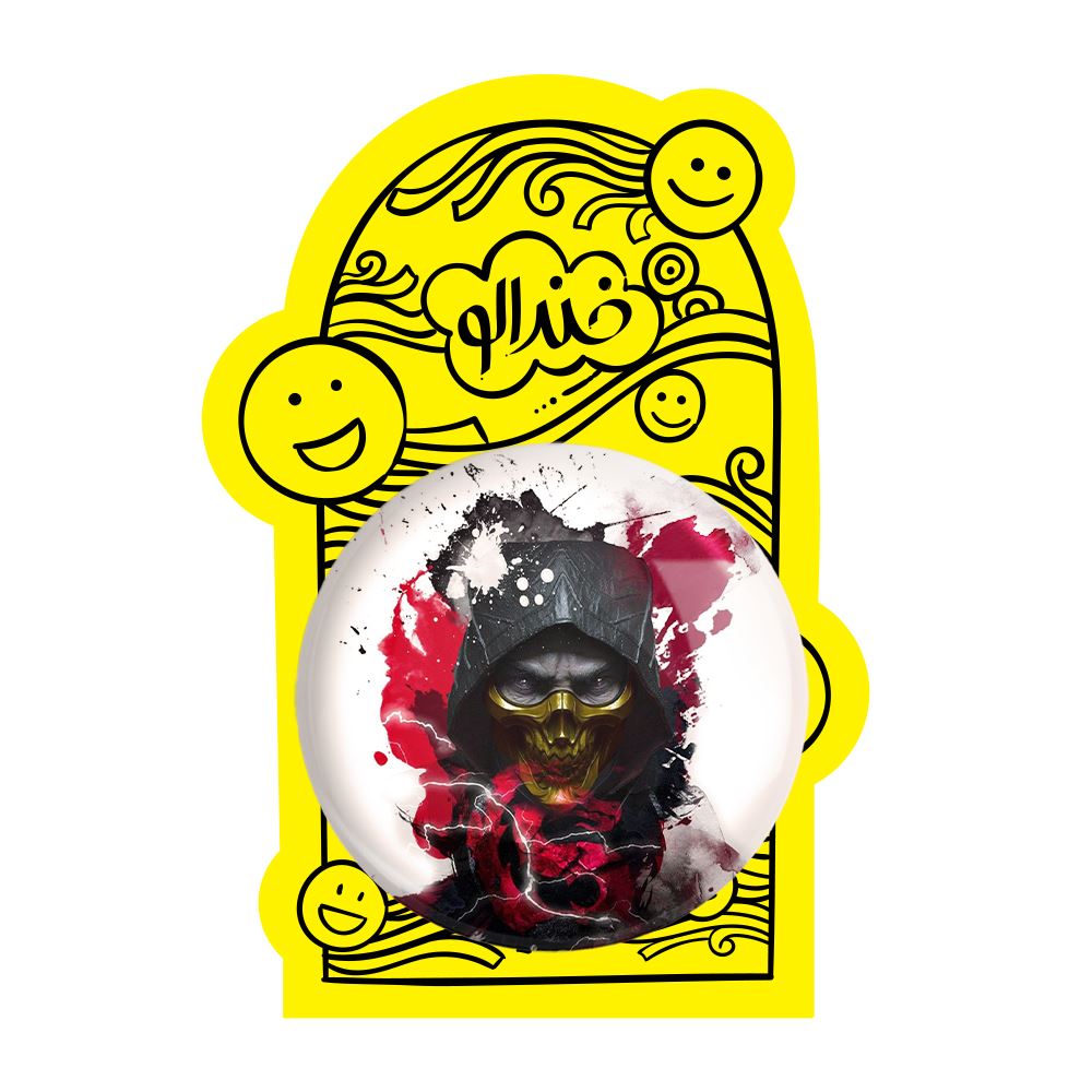 پیکسل بزرگ بازی مورتال کمبت Mortal Kombat خندالو با روکش سلفون حرارتی مات مخملی ضدخش و قطعه پشتی فلزی تولید می شود. قطعات پشت پیکسل های خندالو با سوزن یک تکه ثابت و بدون لغزش و جا به جایی، ایستایی بسیار خوبی دارند که این مهم در تولید پیکسل های 58 میلیمتری نیز رعایت شده است.