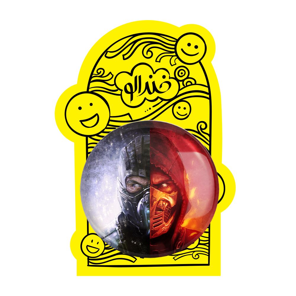 پیکسل بزرگ بازی مورتال کمبت Mortal Kombat خندالو با روکش سلفون حرارتی مات مخملی ضدخش و قطعه پشتی فلزی تولید می شود. قطعات پشت پیکسل های خندالو با سوزن یک تکه ثابت و بدون لغزش و جا به جایی، ایستایی بسیار خوبی دارند که این مهم در تولید پیکسل های 58 میلیمتری نیز رعایت شده است.