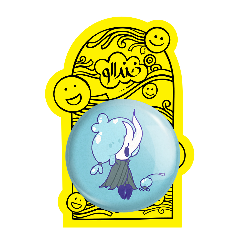 پیکسل بزرگ بازی هالو نایت (Hollow Knight) خندالو با روکش سلفون حرارتی مات مخملی ضدخش و قطعه پشتی فلزی تولید می شود. قطعات پشت پیکسل های خندالو با سوزن یک تکه ثابت و بدون لغزش و جا به جایی، ایستایی بسیار خوبی دارند که این مهم در تولید پیکسل های 58 میلیمتری نیز رعایت شده است.