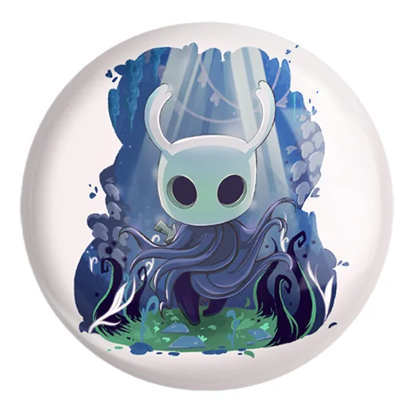 پیکسل بزرگ بازی هالو نایت (Hollow Knight) خندالو با روکش سلفون حرارتی مات مخملی ضدخش و قطعه پشتی فلزی تولید می شود. قطعات پشت پیکسل های خندالو با سوزن یک تکه ثابت و بدون لغزش و جا به جایی، ایستایی بسیار خوبی دارند که این مهم در تولید پیکسل های 58 میلیمتری نیز رعایت شده است.