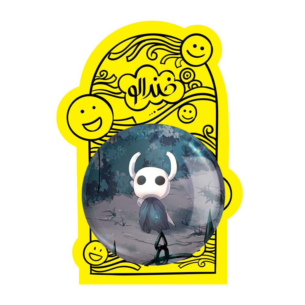 پیکسل بزرگ بازی هالو نایت (Hollow Knight) خندالو با روکش سلفون حرارتی مات مخملی ضدخش و قطعه پشتی فلزی تولید می شود. قطعات پشت پیکسل های خندالو با سوزن یک تکه ثابت و بدون لغزش و جا به جایی، ایستایی بسیار خوبی دارند که این مهم در تولید پیکسل های 58 میلیمتری نیز رعایت شده است.