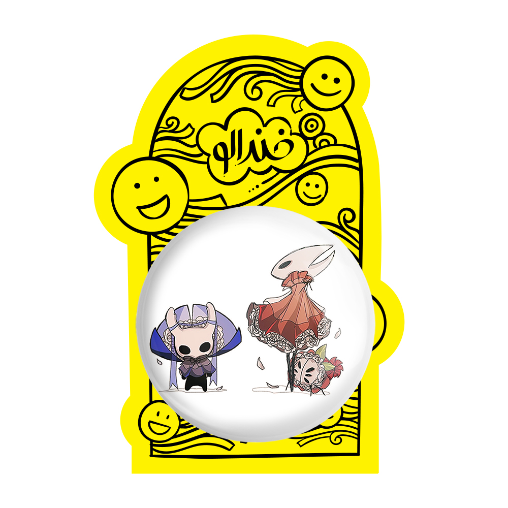 پیکسل بزرگ بازی هالو نایت (Hollow Knight) خندالو با روکش سلفون حرارتی مات مخملی ضدخش و قطعه پشتی فلزی تولید می شود. قطعات پشت پیکسل های خندالو با سوزن یک تکه ثابت و بدون لغزش و جا به جایی، ایستایی بسیار خوبی دارند که این مهم در تولید پیکسل های 58 میلیمتری نیز رعایت شده است.