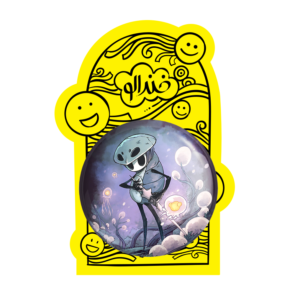 پیکسل بزرگ بازی هالو نایت (Hollow Knight) خندالو با روکش سلفون حرارتی مات مخملی ضدخش و قطعه پشتی فلزی تولید می شود. قطعات پشت پیکسل های خندالو با سوزن یک تکه ثابت و بدون لغزش و جا به جایی، ایستایی بسیار خوبی دارند که این مهم در تولید پیکسل های 58 میلیمتری نیز رعایت شده است.