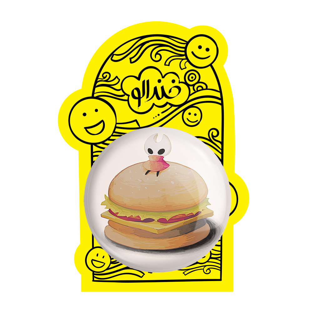 پیکسل بزرگ بازی هالو نایت (Hollow Knight) خندالو با روکش سلفون حرارتی مات مخملی ضدخش و قطعه پشتی فلزی تولید می شود. قطعات پشت پیکسل های خندالو با سوزن یک تکه ثابت و بدون لغزش و جا به جایی، ایستایی بسیار خوبی دارند که این مهم در تولید پیکسل های 58 میلیمتری نیز رعایت شده است.