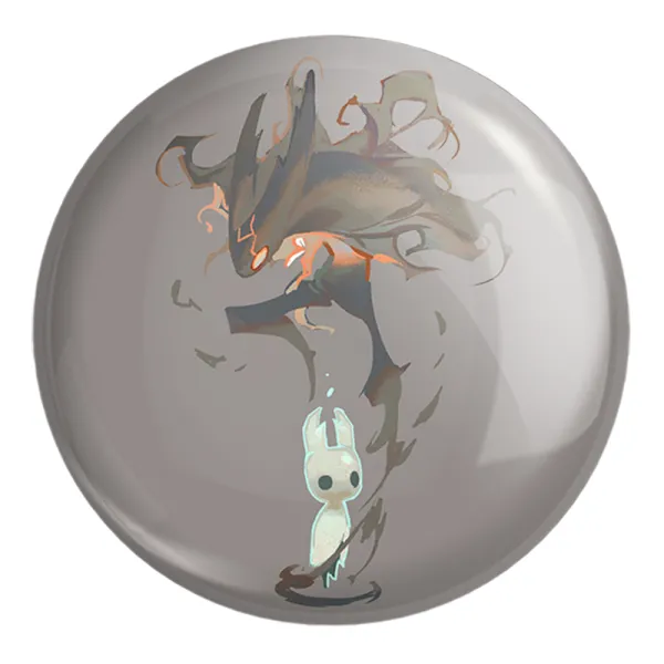 پیکسل بزرگ بازی هالو نایت (Hollow Knight) خندالو با روکش سلفون حرارتی مات مخملی ضدخش و قطعه پشتی فلزی تولید می شود. قطعات پشت پیکسل های خندالو با سوزن یک تکه ثابت و بدون لغزش و جا به جایی، ایستایی بسیار خوبی دارند که این مهم در تولید پیکسل های 58 میلیمتری نیز رعایت شده است.