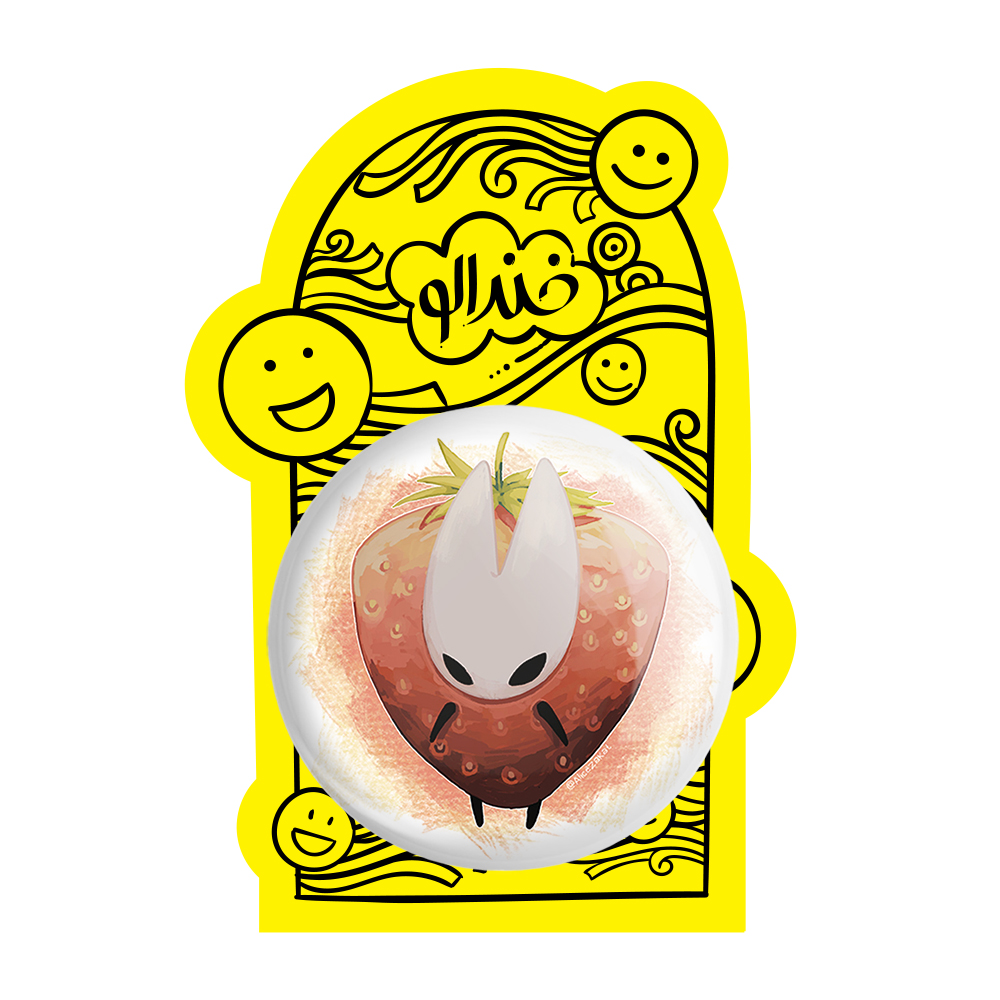 پیکسل بزرگ بازی هالو نایت (Hollow Knight) خندالو با روکش سلفون حرارتی مات مخملی ضدخش و قطعه پشتی فلزی تولید می شود. قطعات پشت پیکسل های خندالو با سوزن یک تکه ثابت و بدون لغزش و جا به جایی، ایستایی بسیار خوبی دارند که این مهم در تولید پیکسل های 58 میلیمتری نیز رعایت شده است.