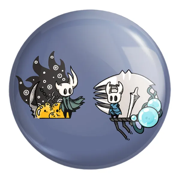 پیکسل بزرگ بازی هالو نایت (Hollow Knight) خندالو با روکش سلفون حرارتی مات مخملی ضدخش و قطعه پشتی فلزی تولید می شود. قطعات پشت پیکسل های خندالو با سوزن یک تکه ثابت و بدون لغزش و جا به جایی، ایستایی بسیار خوبی دارند که این مهم در تولید پیکسل های 58 میلیمتری نیز رعایت شده است.
