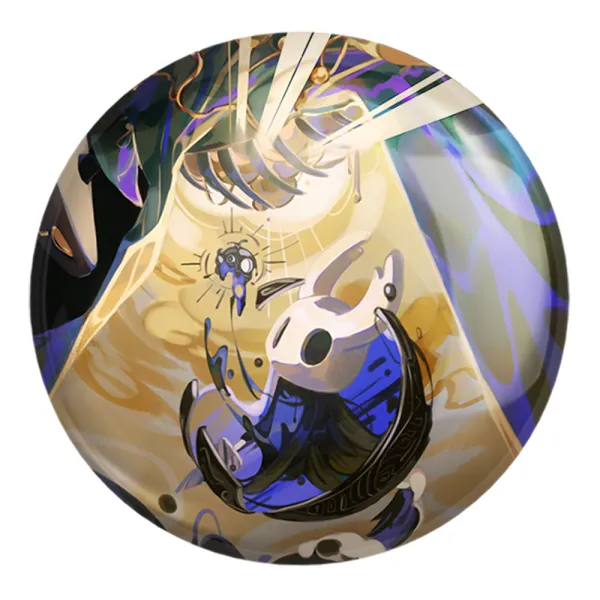 پیکسل بزرگ بازی هالو نایت (Hollow Knight) خندالو با روکش سلفون حرارتی مات مخملی ضدخش و قطعه پشتی فلزی تولید می شود. قطعات پشت پیکسل های خندالو با سوزن یک تکه ثابت و بدون لغزش و جا به جایی، ایستایی بسیار خوبی دارند که این مهم در تولید پیکسل های 58 میلیمتری نیز رعایت شده است.