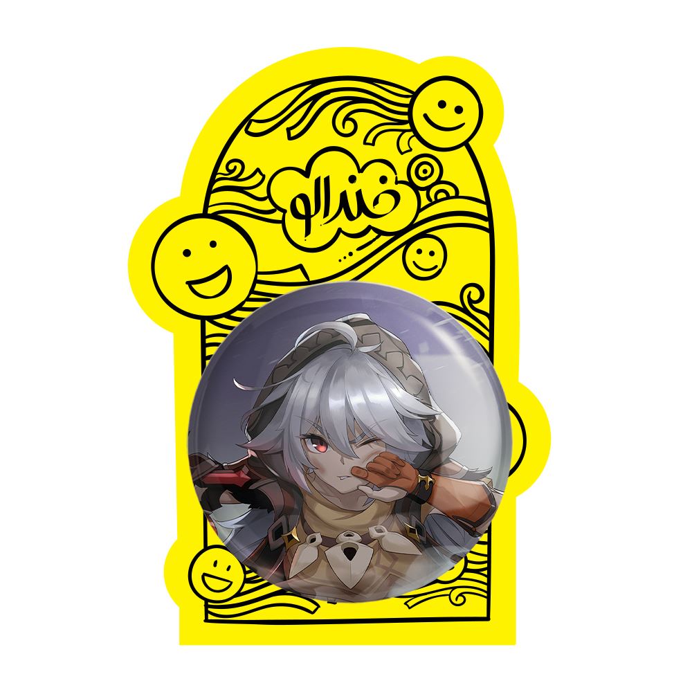 پیکسل بزرگ بازی گنشین ایمپکت Genshin Impact خندالو با روکش سلفون حرارتی مات مخملی ضدخش و قطعه پشتی فلزی تولید می شود. قطعات پشت پیکسل های خندالو با سوزن یک تکه ثابت و بدون لغزش و جا به جایی، ایستایی بسیار خوبی دارند که این مهم در تولید پیکسل های 58 میلیمتری نیز رعایت شده است.