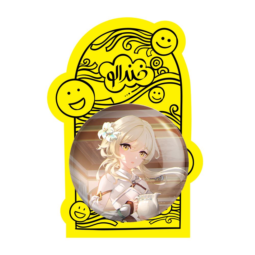 پیکسل بزرگ بازی گنشین ایمپکت Genshin Impact خندالو با روکش سلفون حرارتی مات مخملی ضدخش و قطعه پشتی فلزی تولید می شود. قطعات پشت پیکسل های خندالو با سوزن یک تکه ثابت و بدون لغزش و جا به جایی، ایستایی بسیار خوبی دارند که این مهم در تولید پیکسل های 58 میلیمتری نیز رعایت شده است.