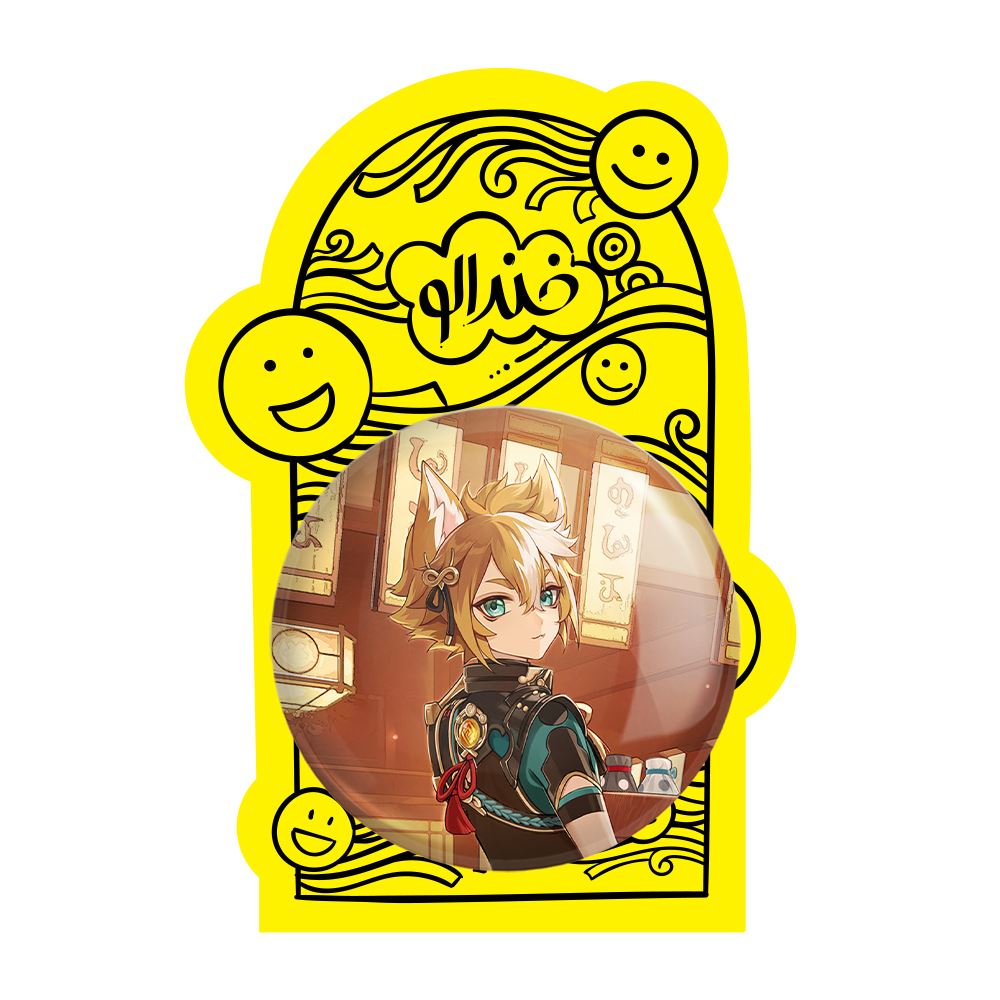 پیکسل بزرگ بازی گنشین ایمپکت Genshin Impact خندالو با روکش سلفون حرارتی مات مخملی ضدخش و قطعه پشتی فلزی تولید می شود. قطعات پشت پیکسل های خندالو با سوزن یک تکه ثابت و بدون لغزش و جا به جایی، ایستایی بسیار خوبی دارند که این مهم در تولید پیکسل های 58 میلیمتری نیز رعایت شده است.