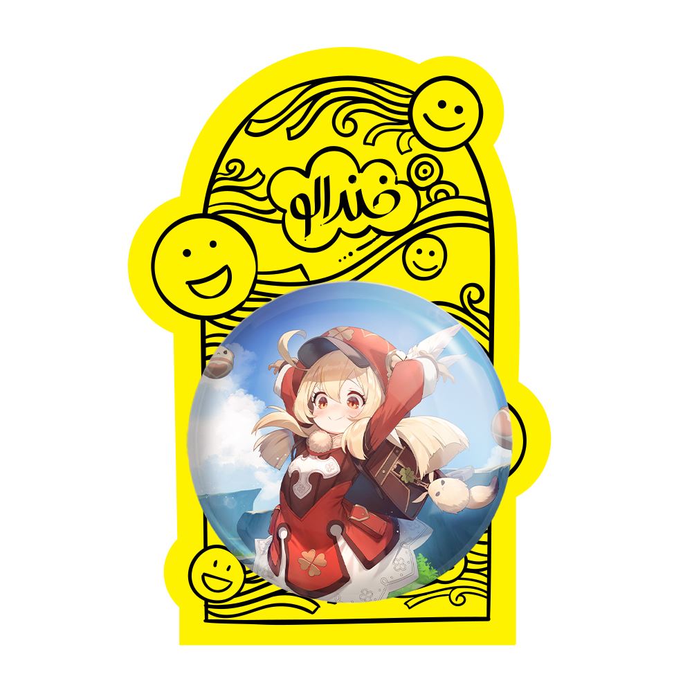 پیکسل بزرگ بازی گنشین ایمپکت Genshin Impact خندالو با روکش سلفون حرارتی مات مخملی ضدخش و قطعه پشتی فلزی تولید می شود. قطعات پشت پیکسل های خندالو با سوزن یک تکه ثابت و بدون لغزش و جا به جایی، ایستایی بسیار خوبی دارند که این مهم در تولید پیکسل های 58 میلیمتری نیز رعایت شده است.
