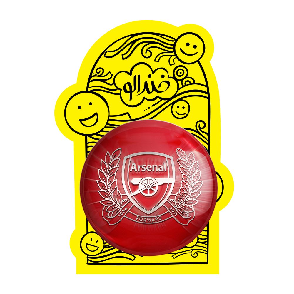پیکسل بزرگ باشگاه آرسنال Arsenal خندالو با روکش سلفون حرارتی مات مخملی ضدخش و قطعه پشتی فلزی تولید می شود. قطعات پشت پیکسل های خندالو با سوزن یک تکه ثابت و بدون لغزش و جا به جایی، ایستایی بسیار خوبی دارند که این مهم در تولید پیکسل های 58 میلیمتری نیز رعایت شده است.