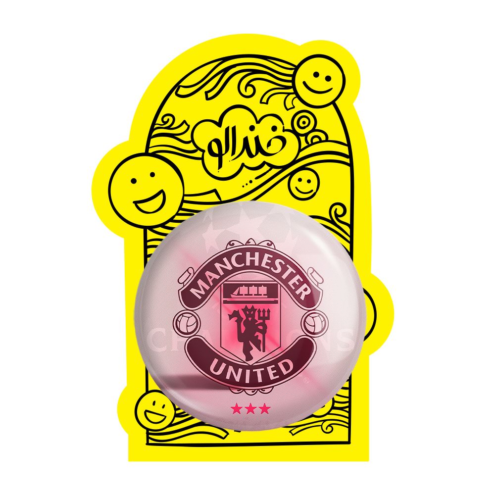 پیکسل بزرگ باشگاه منچستر یونایتد خندالو با روکش سلفون حرارتی مات مخملی ضدخش و قطعه پشتی فلزی تولید می شود. قطعات پشت پیکسل های خندالو با سوزن یک تکه ثابت و بدون لغزش و جا به جایی، ایستایی بسیار خوبی دارند که این مهم در تولید پیکسل های 58 میلیمتری نیز رعایت شده است.