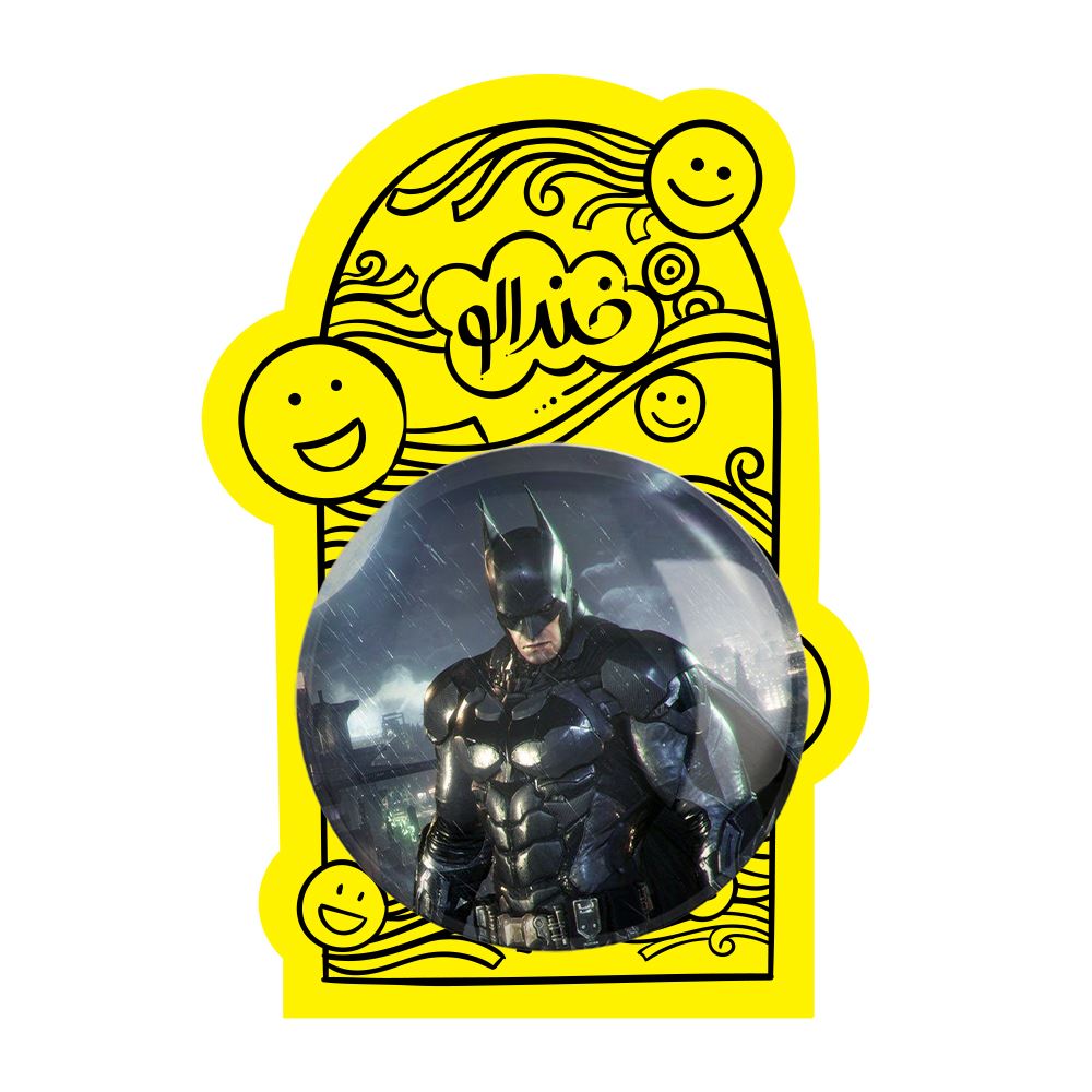 پیکسل بزرگ بتمن شوالیه آرخام Batman Arkham knight خندالو با روکش سلفون حرارتی مات مخملی ضدخش و قطعه پشتی فلزی تولید می شود. قطعات پشت پیکسل های خندالو با سوزن یک تکه ثابت و بدون لغزش و جا به جایی، ایستایی بسیار خوبی دارند که این مهم در تولید پیکسل های 58 میلیمتری نیز رعایت شده است.