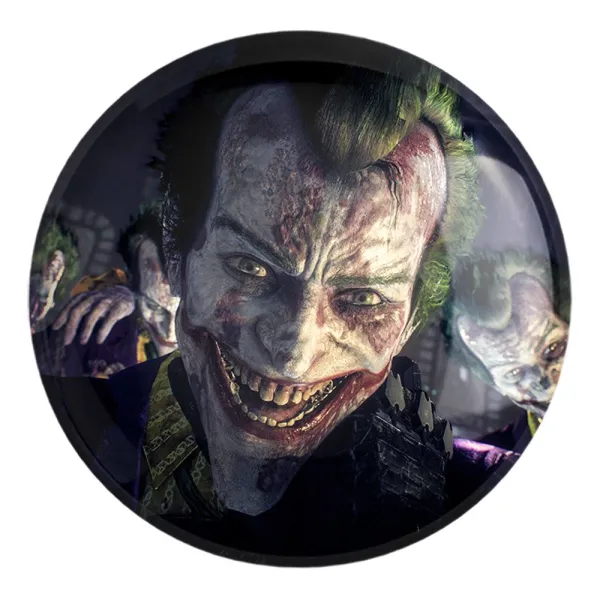 پیکسل بزرگ بتمن شوالیه آرخام Batman Arkham knight خندالو با روکش سلفون حرارتی مات مخملی ضدخش و قطعه پشتی فلزی تولید می شود. قطعات پشت پیکسل های خندالو با سوزن یک تکه ثابت و بدون لغزش و جا به جایی، ایستایی بسیار خوبی دارند که این مهم در تولید پیکسل های 58 میلیمتری نیز رعایت شده است.