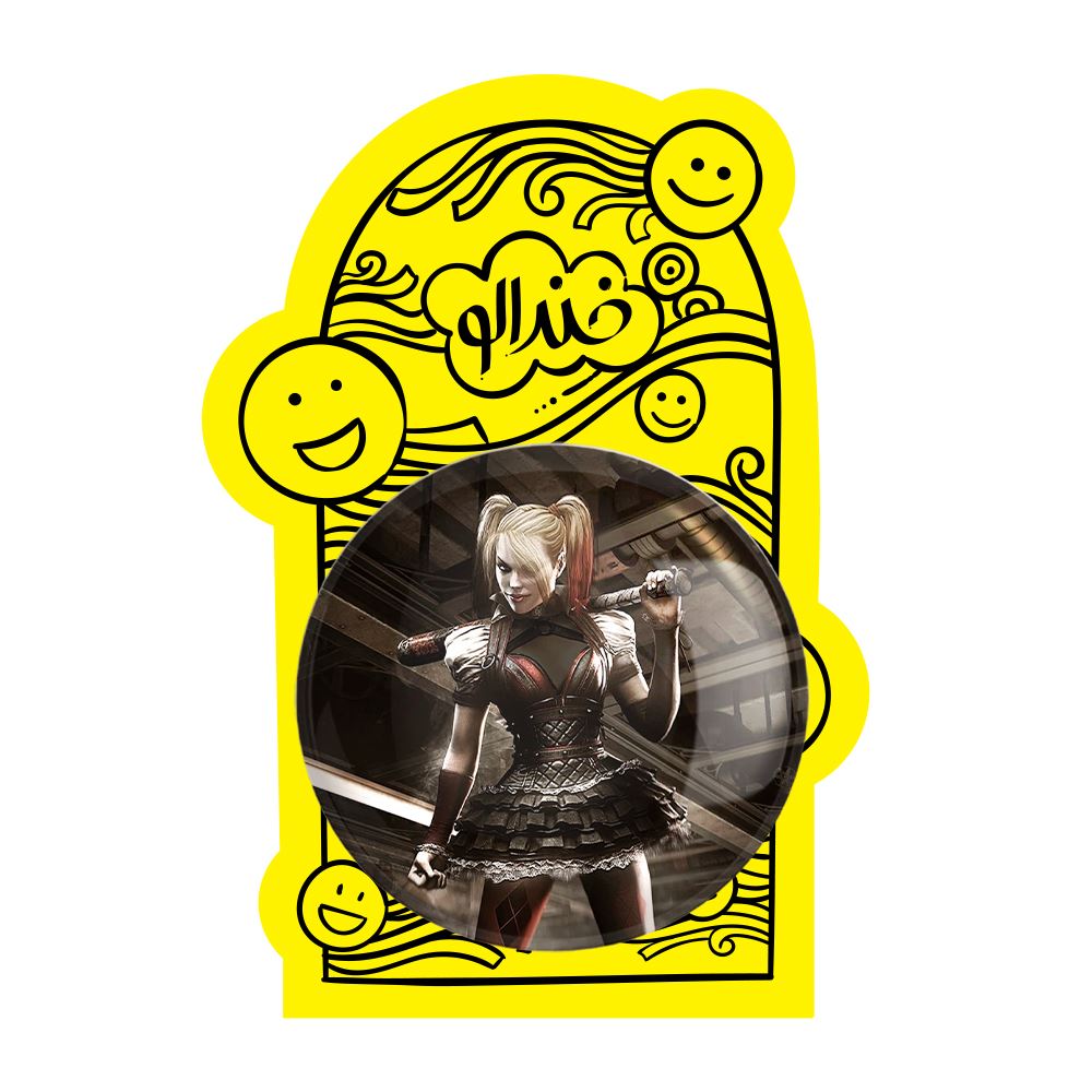 پیکسل بزرگ بتمن شوالیه آرخام Batman Arkham knight خندالو با روکش سلفون حرارتی مات مخملی ضدخش و قطعه پشتی فلزی تولید می شود. قطعات پشت پیکسل های خندالو با سوزن یک تکه ثابت و بدون لغزش و جا به جایی، ایستایی بسیار خوبی دارند که این مهم در تولید پیکسل های 58 میلیمتری نیز رعایت شده است.