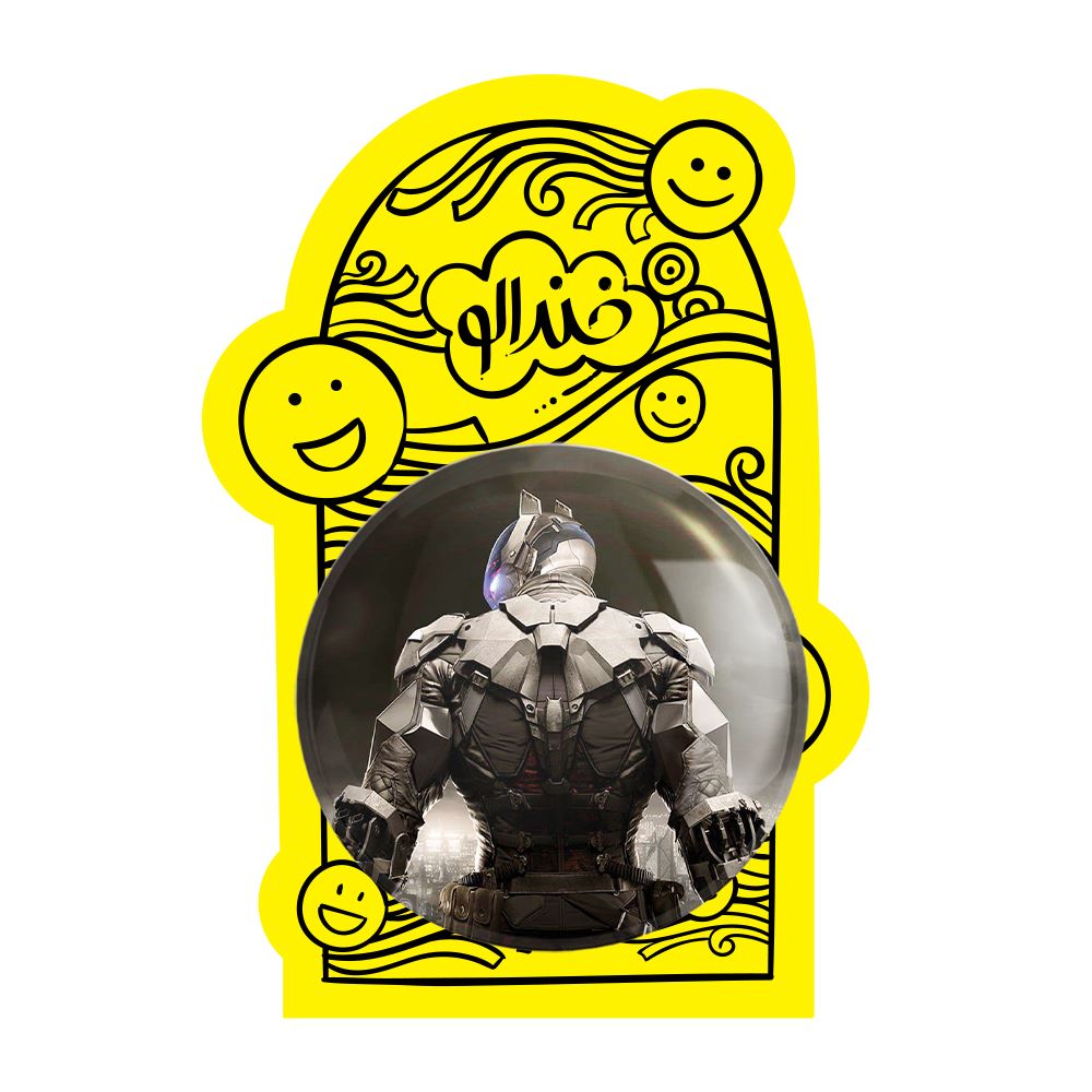 پیکسل بزرگ بتمن شوالیه آرخام Batman Arkham knight خندالو با روکش سلفون حرارتی مات مخملی ضدخش و قطعه پشتی فلزی تولید می شود. قطعات پشت پیکسل های خندالو با سوزن یک تکه ثابت و بدون لغزش و جا به جایی، ایستایی بسیار خوبی دارند که این مهم در تولید پیکسل های 58 میلیمتری نیز رعایت شده است.