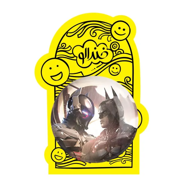 پیکسل بزرگ بتمن شوالیه آرخام Batman Arkham knight خندالو با روکش سلفون حرارتی مات مخملی ضدخش و قطعه پشتی فلزی تولید می شود. قطعات پشت پیکسل های خندالو با سوزن یک تکه ثابت و بدون لغزش و جا به جایی، ایستایی بسیار خوبی دارند که این مهم در تولید پیکسل های 58 میلیمتری نیز رعایت شده است.