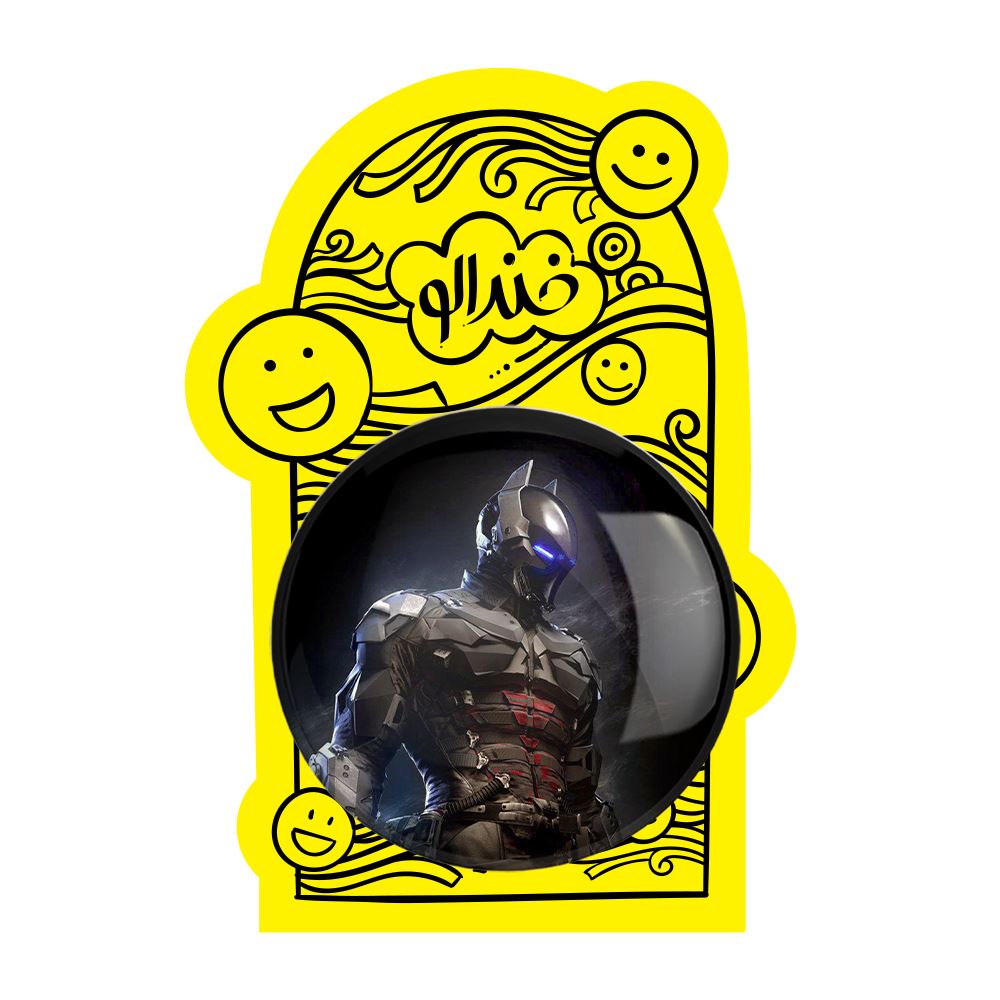 پیکسل بزرگ بتمن شوالیه آرخام Batman Arkham knight خندالو با روکش سلفون حرارتی مات مخملی ضدخش و قطعه پشتی فلزی تولید می شود. قطعات پشت پیکسل های خندالو با سوزن یک تکه ثابت و بدون لغزش و جا به جایی، ایستایی بسیار خوبی دارند که این مهم در تولید پیکسل های 58 میلیمتری نیز رعایت شده است.