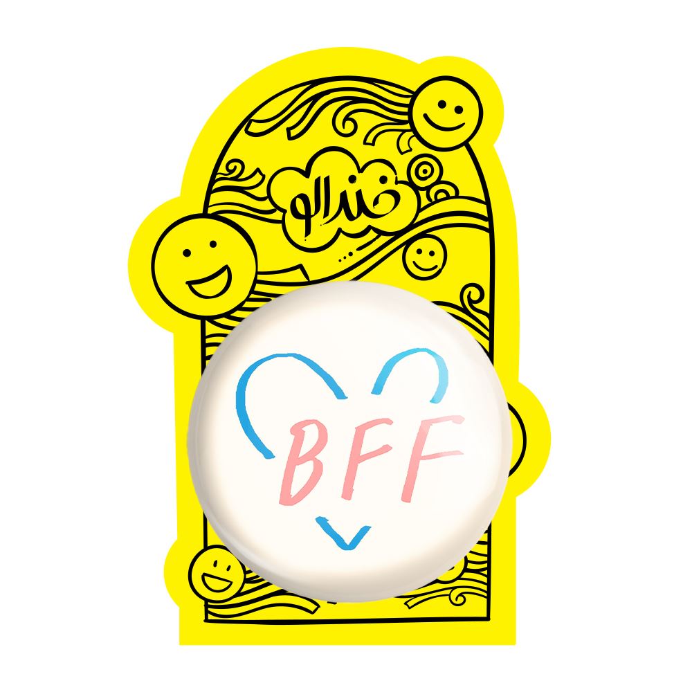 پیکسل بزرگ بهترین دوستان Best Friends خندالو با روکش سلفون حرارتی مات مخملی ضدخش و قطعه پشتی فلزی تولید می شود. قطعات پشت پیکسل های خندالو با سوزن یک تکه ثابت و بدون لغزش و جا به جایی، ایستایی بسیار خوبی دارند که این مهم در تولید پیکسل های 58 میلیمتری نیز رعایت شده است.