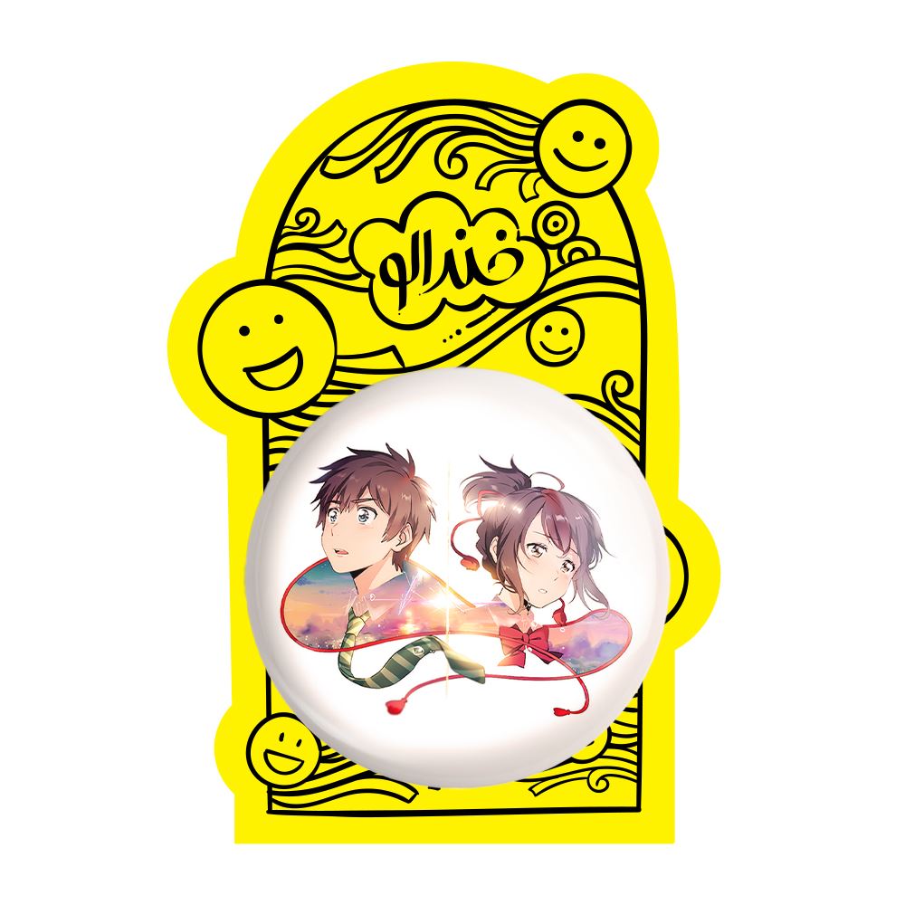 پیکسل بزرگ تاکی تاچیبانا و میتسویا میامیزو انیمه یورنیم Your Name خندالو با روکش سلفون حرارتی مات مخملی ضدخش و قطعه پشتی فلزی تولید می شود. قطعات پشت پیکسل های خندالو با سوزن یک تکه ثابت و بدون لغزش و جا به جایی، ایستایی بسیار خوبی دارند که این مهم در تولید پیکسل های 58 میلیمتری نیز رعایت شده است.